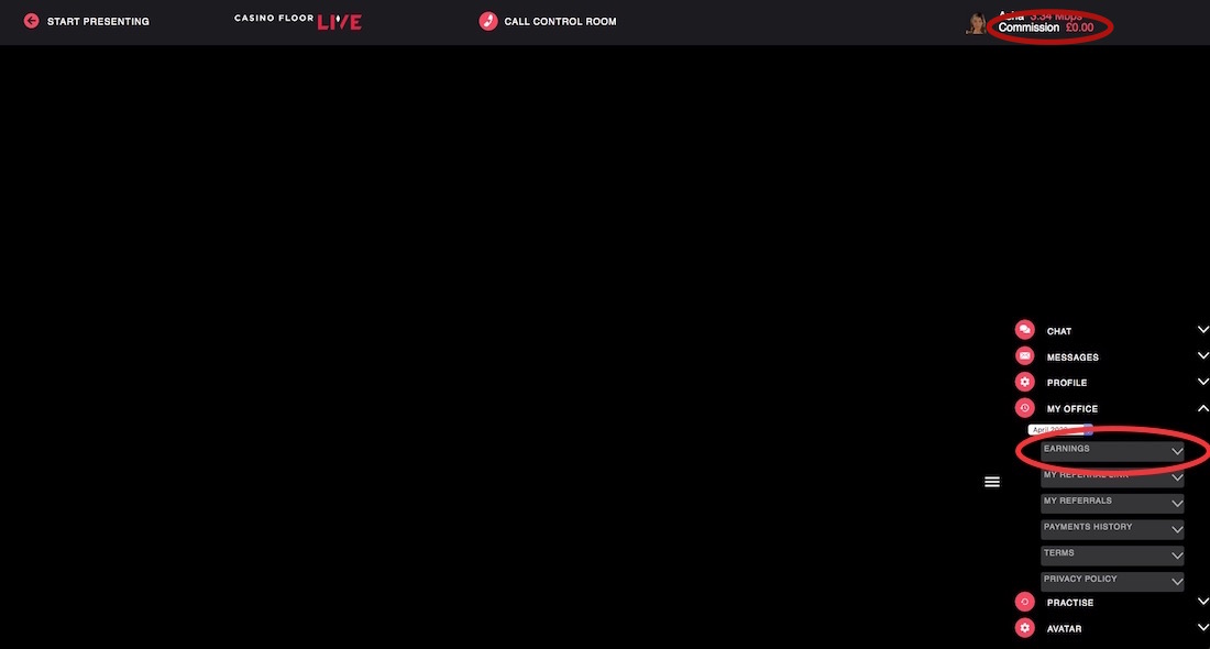 You can view your earnings by clicking 'Enter Casino Floor' then 'My Office'